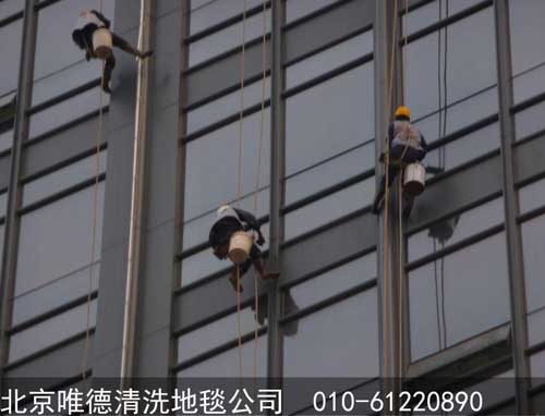 2、吊籃的清洗方式;可以在樓頂用吊籃將其運送到指定的位置進行操作,這種清洗方法效率較低,成本較高。